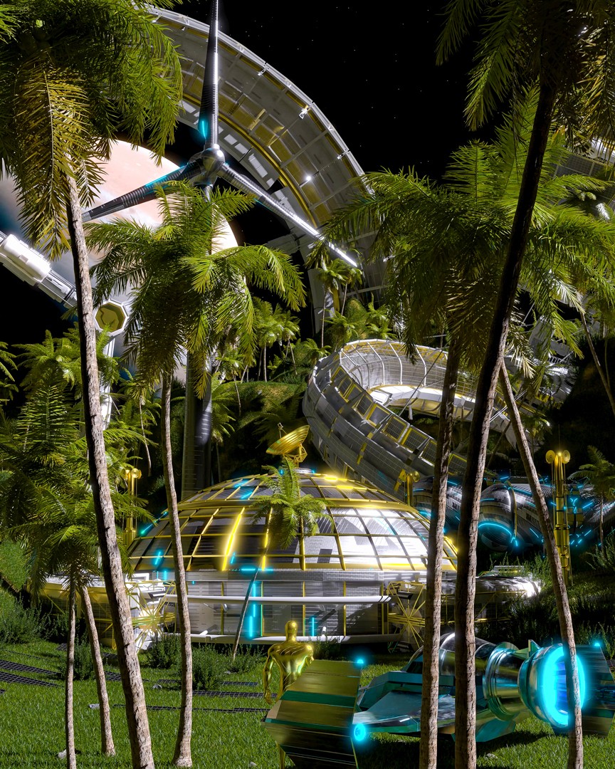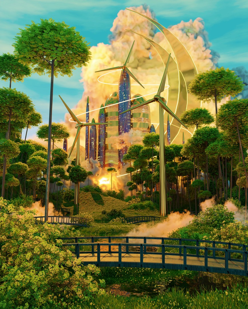 Five of my artworks were included in the publication, selected from my Solarpunk and Ultraviolet bodies of work. These pieces explore sustainability, luminous landscapes, eco-futurist worldbuilding, and meditative storytelling, reflecting my ongoing interest in blending speculative futures with atmospheric, light-driven digital environments.