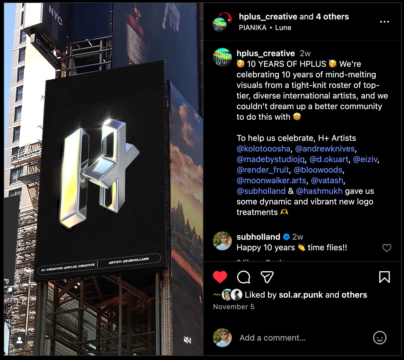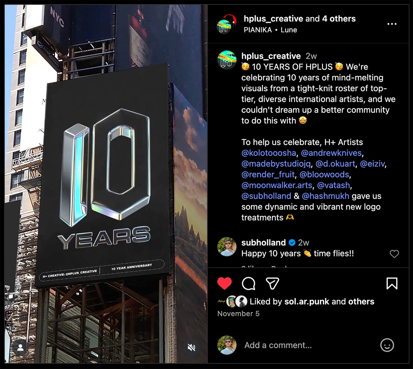 This project combined 3D design, branding, and motion-driven visual identity, creating a commemorative set of animations that honored H+ Creative’s evolution and the vibrant digital art community it continues to champion.