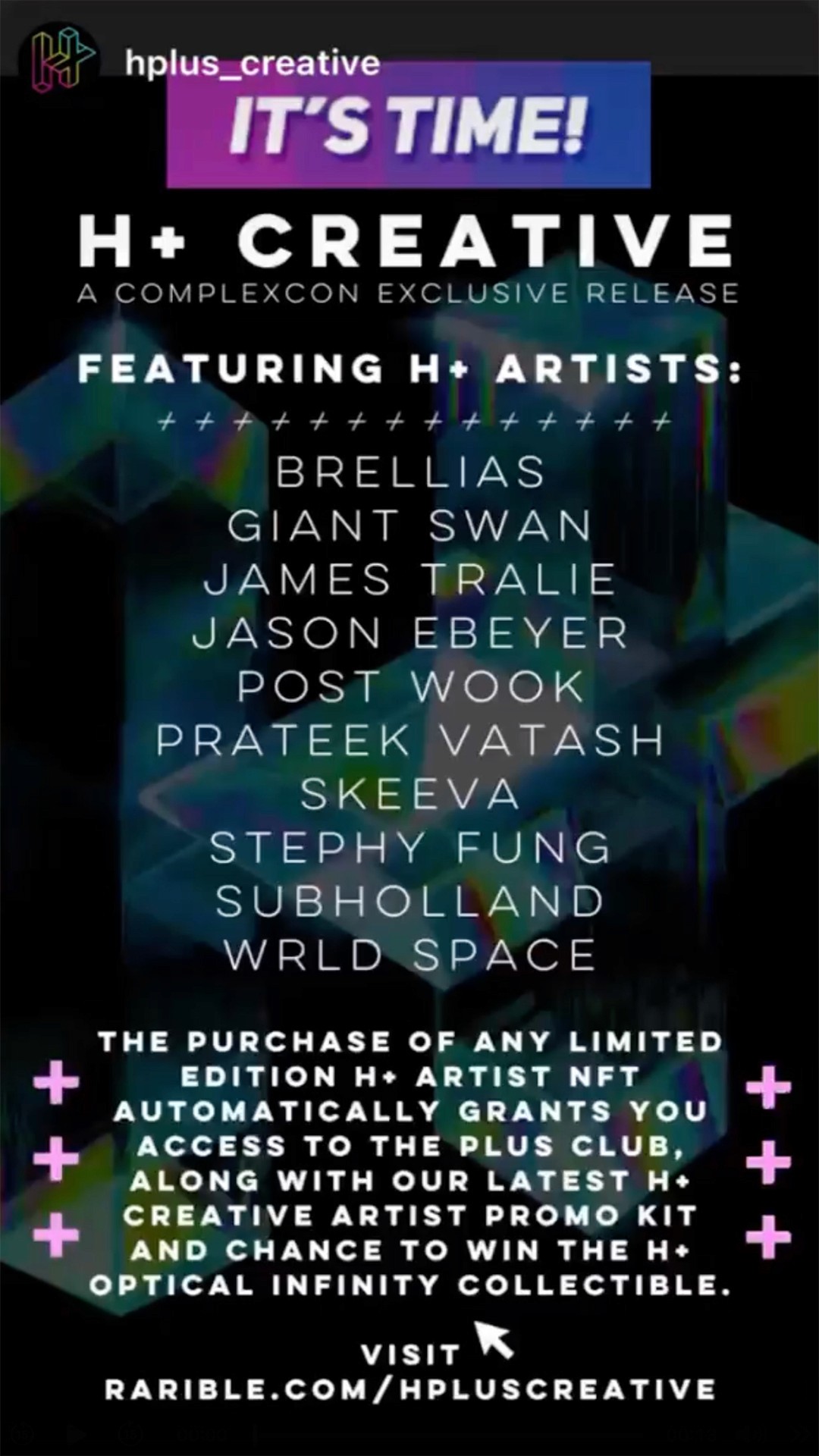 Digital Logo Art for H+ Creative, showcasing exclusive digital collectibles at ComplexCon 2021, launching The Plus Club.
