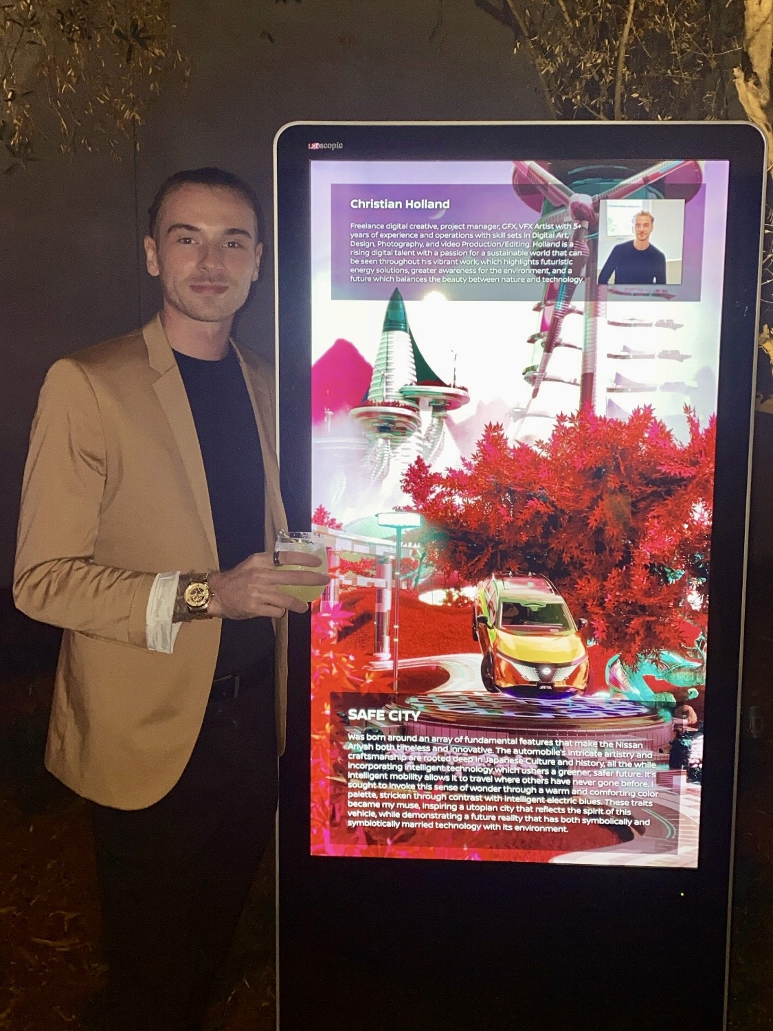 Created in Blender 3D and the Adobe Creative Suite, the piece incorporated detailed modeling, lighting, and compositing workflows optimized for large-scale digital display. The final visuals were showcased during the Electrify Your Life event in Los Angeles, alongside work from other H+ Creative artists.