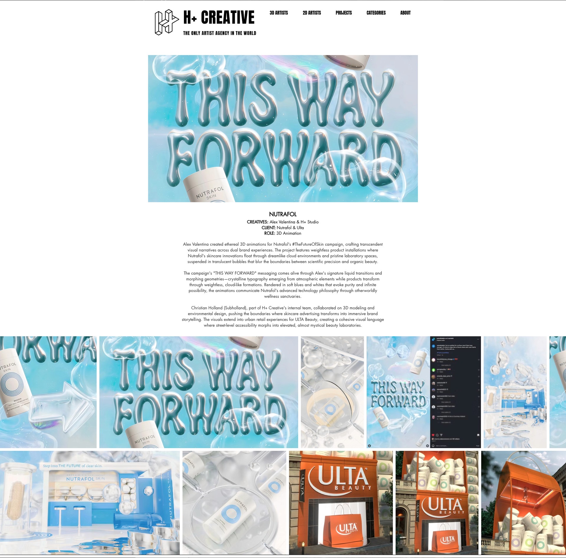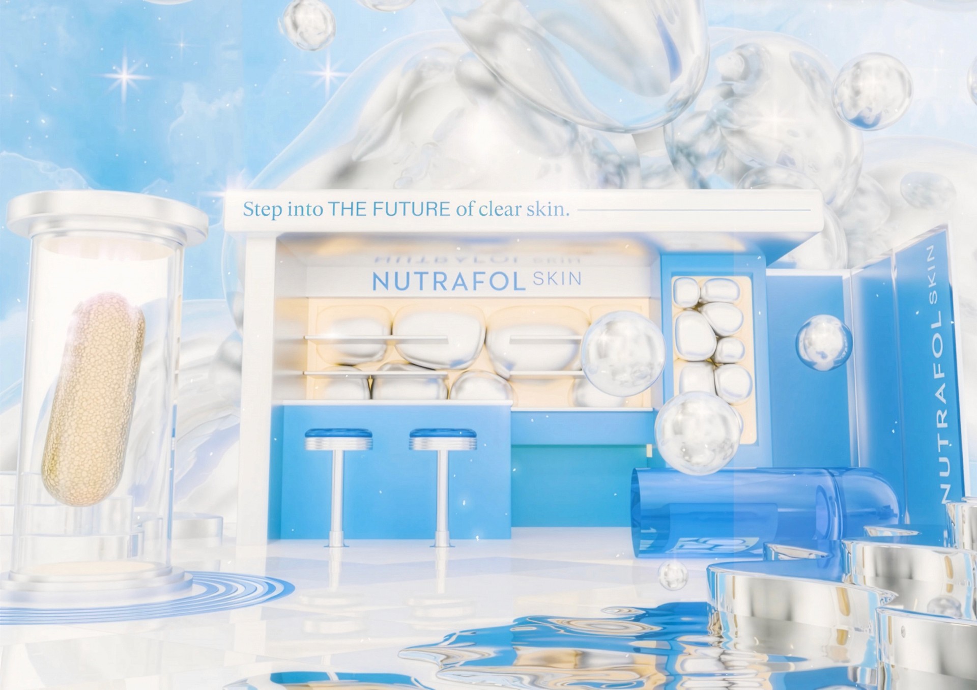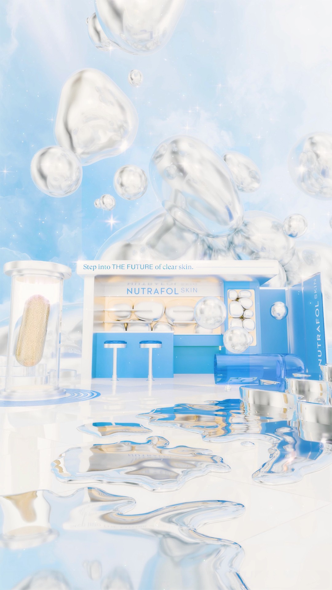 I collaborated with Alex Valentina and H+ Creative to produce 3D Artworks, Assets, and Environmental design for Nutrafol’s “#TheFutureOfSkin” campaign—commissioned to introduce the brand’s next evolution in hair-and-skin wellness. Under Alex’s ethereal visual direction, the campaign transformed Nutrafol’s scientific innovation into dreamlike, elevated beauty narratives.