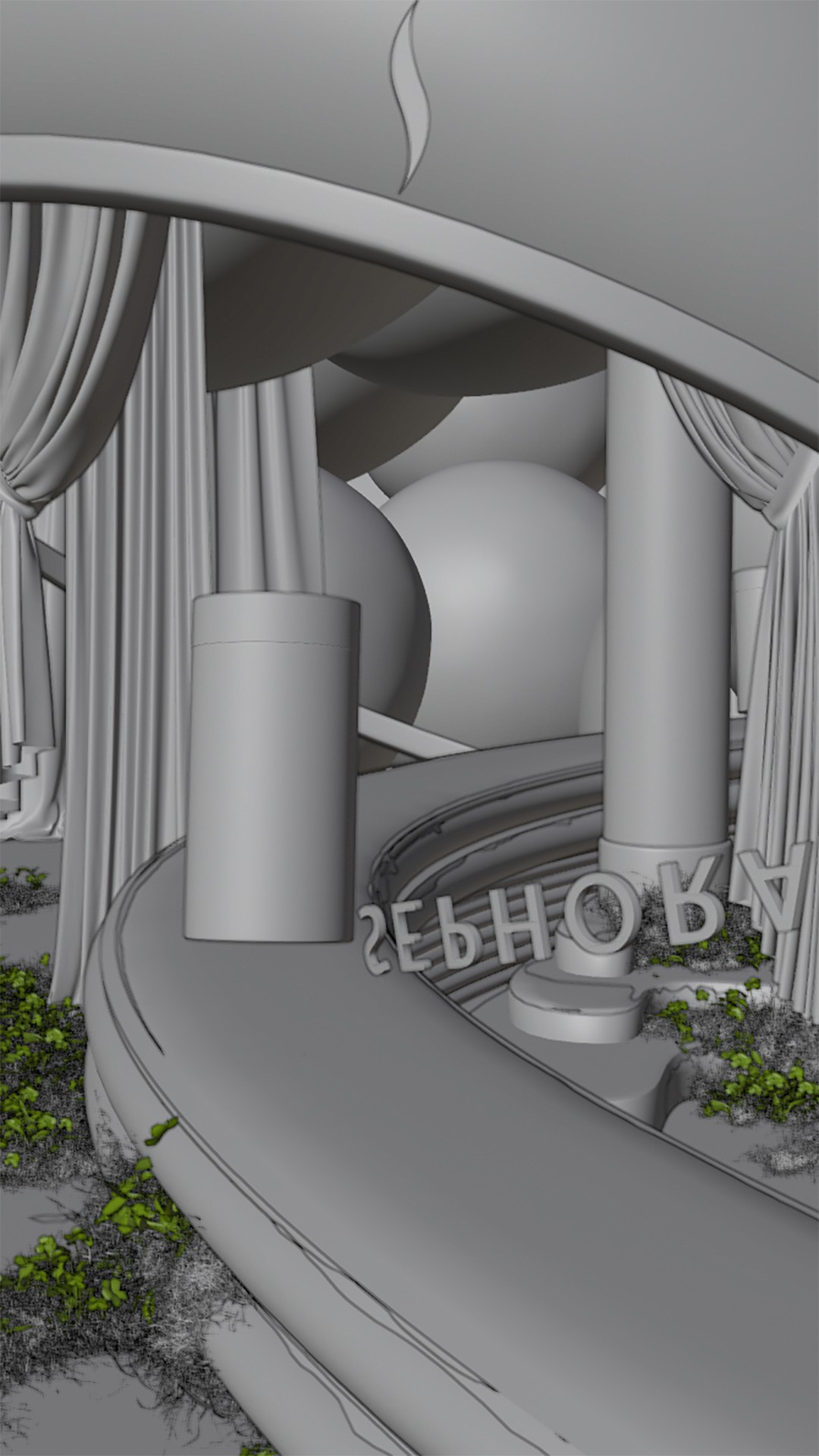 As part of the H+ internal team, I contributed to 3D modeling, atmospheric worldbuilding, and environmental design, helping shape the surreal, softly illuminated spaces that grounded Alex Valentina’s art direction. Rendered in serene blues, whites, and diffused light, these visuals extended beyond digital media into in-store retail experiences for Sephora, forming a cohesive visual language from street-level displays to cinematic brand films.