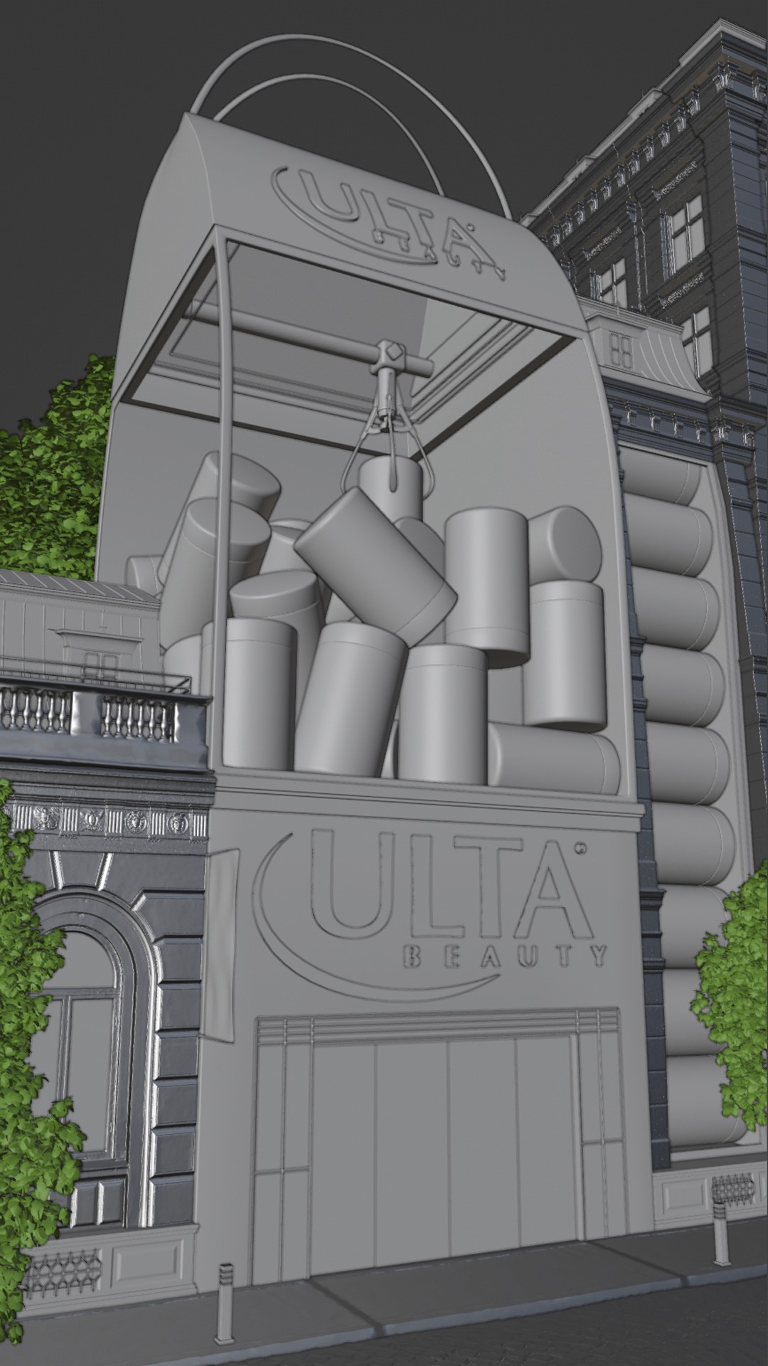 As an H+ Artist, I contributed to 3D modeling, atmospheric worldbuilding, and environmental design, creating a larger-than-life spaces that grounded in the campaigns art direction. Rendered in serene oranges, whites, and diffused light, these visuals extended beyond digital media into in-store retail experiences for ULTA Beauty, forming a cohesive visual language from street-level displays to cinematic social media efforts.
