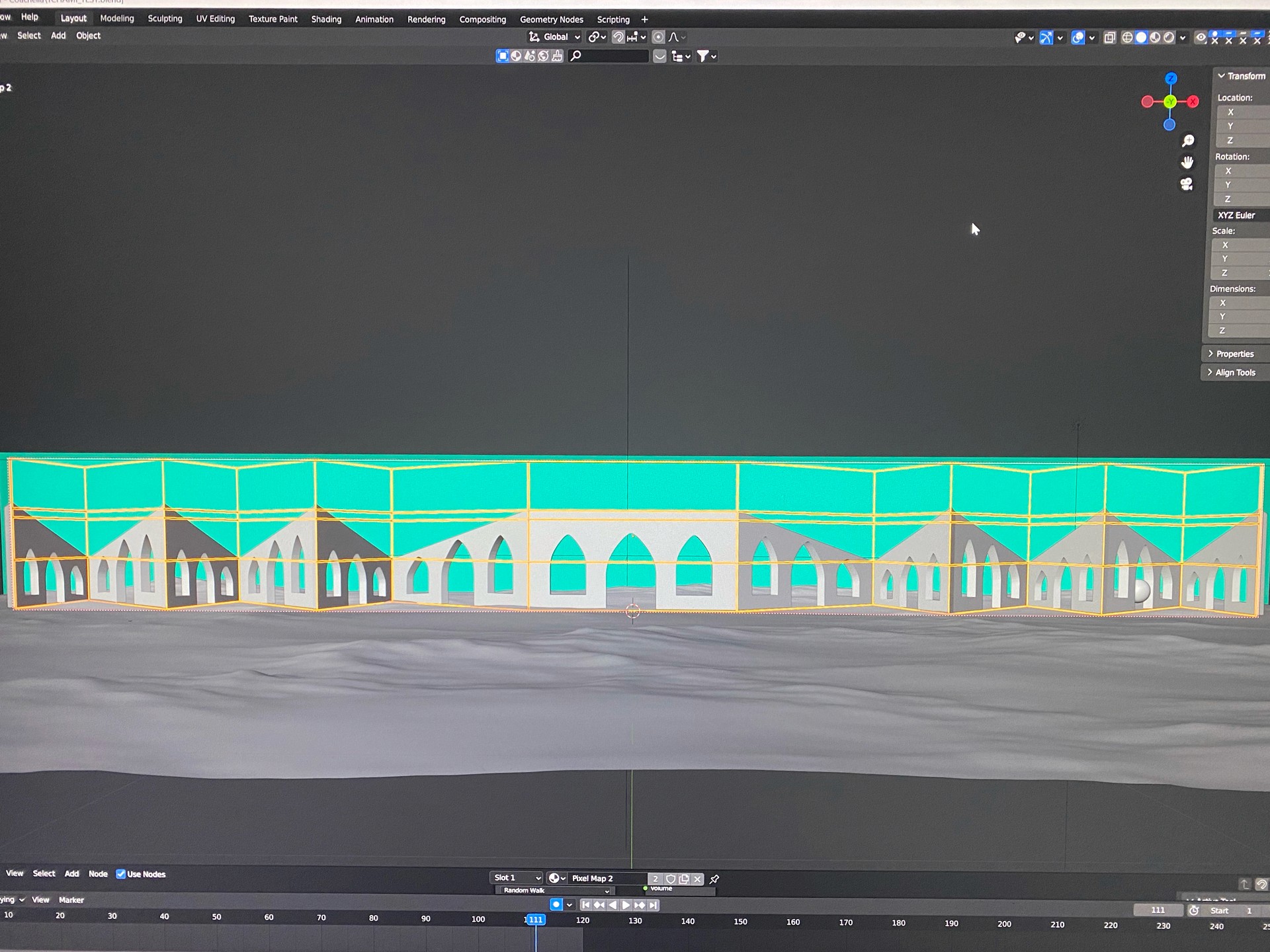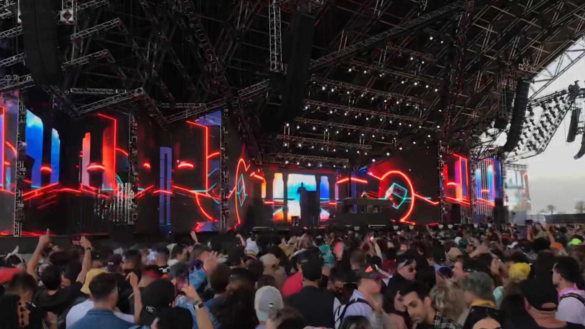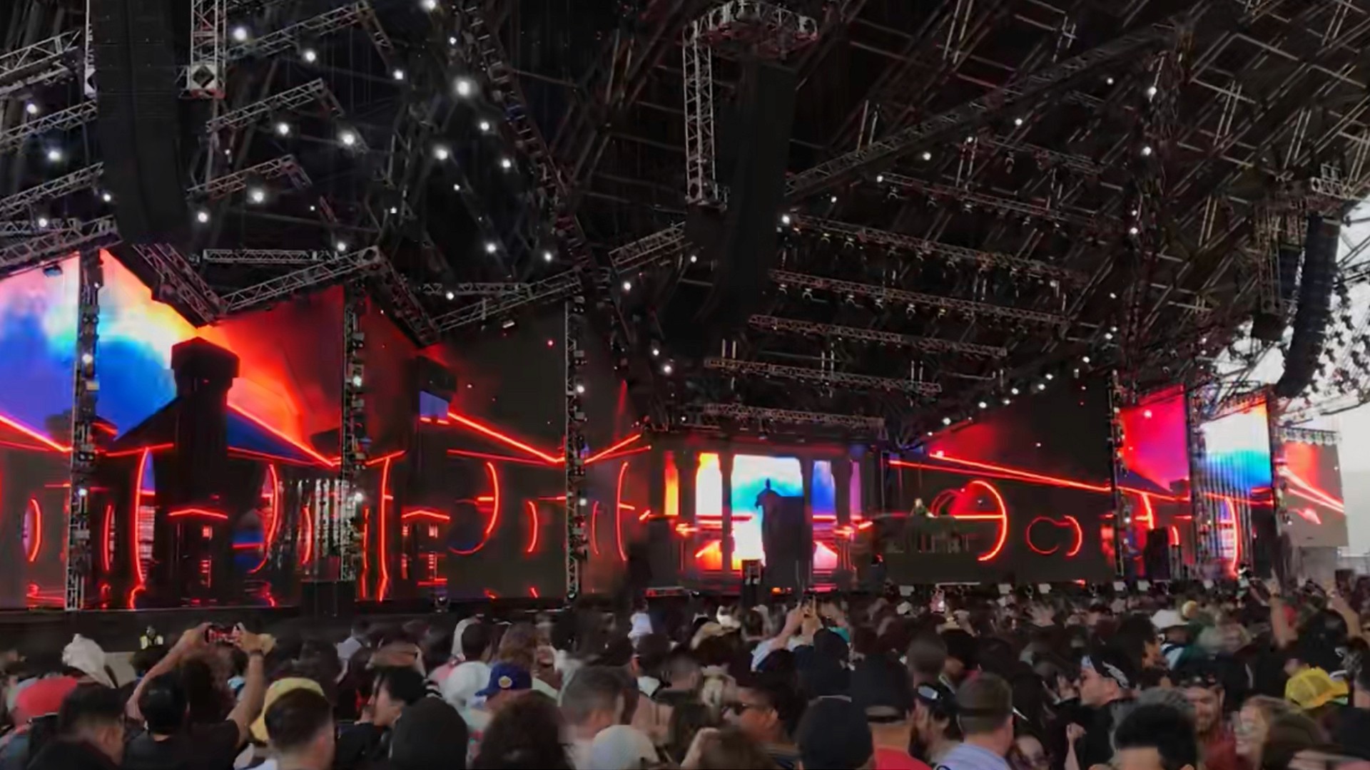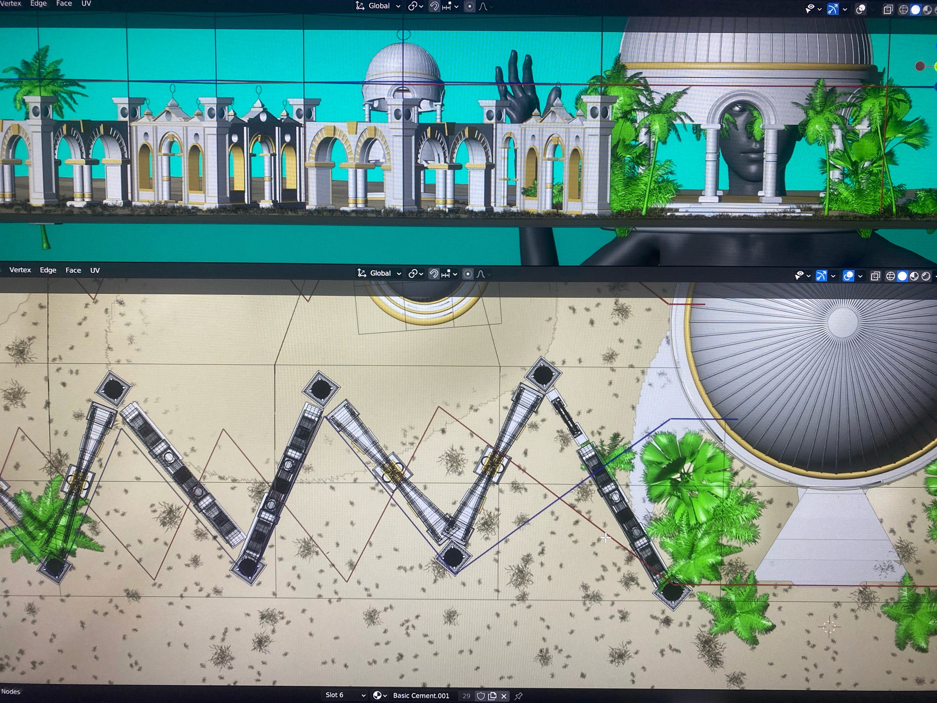 Built in Blender 3D and the Adobe Creative Suite, the visuals leveraged forced-perspective illusions, architectural depth, and animated spatial cues to create an immersive sense of scale on stage. I also developed the stage template files, guiding CGI layout and production to ensure each visual mapped precisely to the Coachella stage design.